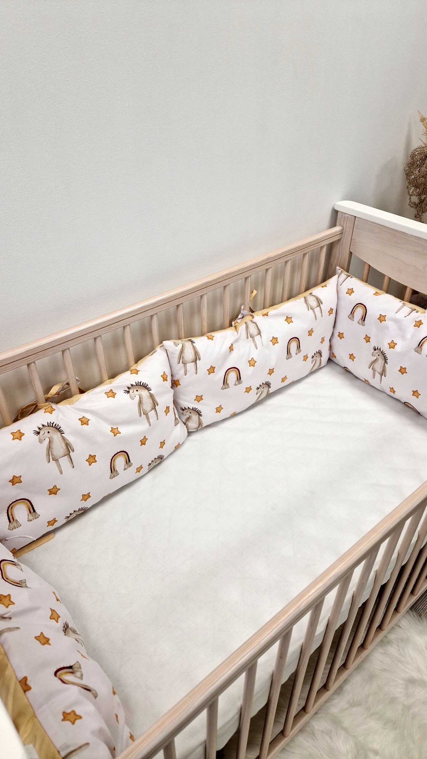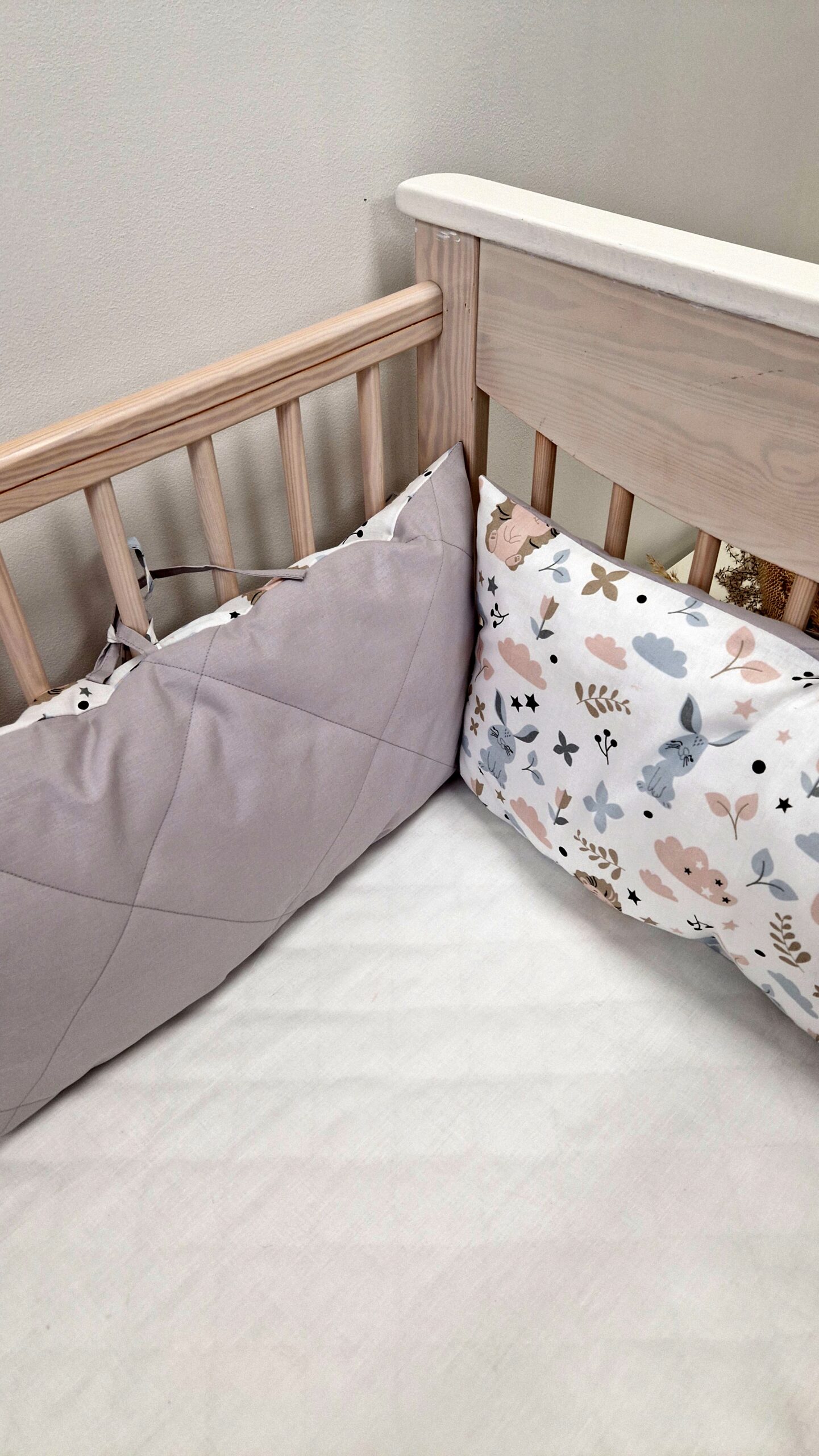 Pageidavus ilgesnius šonus galime pasiūti 30x120cm, susisiekite su mumis prieš užsakant.Viena apsaugėlių pusė yra sudygsniuota,kita ligi be dygsniavimo. Jeigu pageidaujate abieju pusių sudygsniuotu, parašykite prie užsakymo pastabų ar tiesiog parašykite mums.